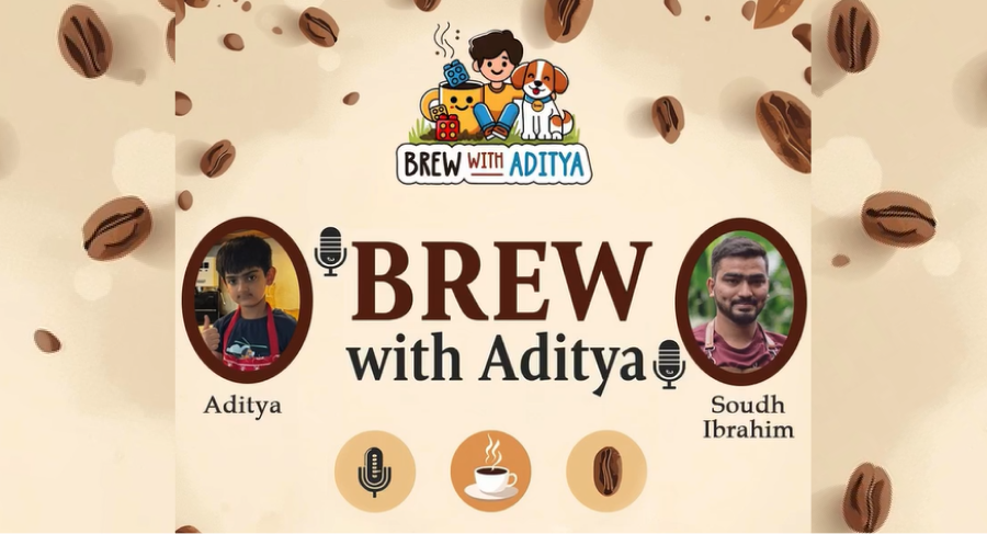 Hi, I’m Aditya! I’m eight, and coffee makes my heart happy. I haven’t tasted it yet, but I’ve been around its smell, its sound, and its stories since I was one and a half years old. I still remember standing on my tiptoes to watch the roaster glow and thinking, “Wow, this is real magic!” That’s how my coffee journey began, with wonder in my eyes and beans in my hands.