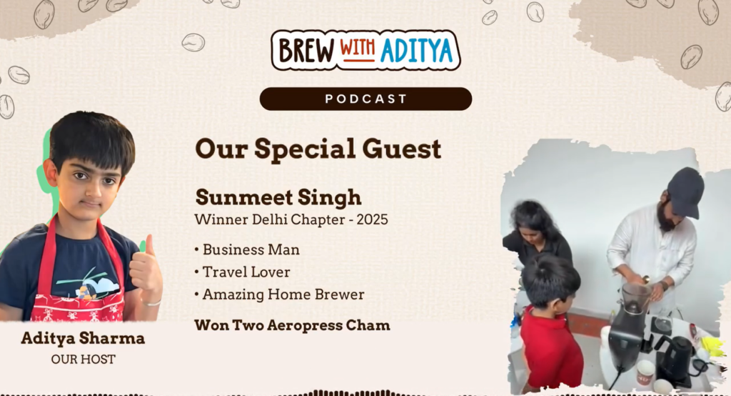 My biggest inspiration is James Hoffmann, whose videos I watch to learn something new every day. He’s like a mentor to me, and I plan to attend more workshops to grow my little coffee brain. I even participated in the Indian Aeropress Championship – Delhi 2025, do watch how my aeropress was appreciated by the judges! My parents make sure everything I do is safe and full of fun. For me, coffee is more than just a drink, it’s love, learning, and a way to make people smile with every roast.